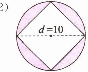 (2)阴影部分由大半圆弧和两个小半圆弧组成,大半圆直径$10$厘米,两小半圆直径之和为$10$厘米。