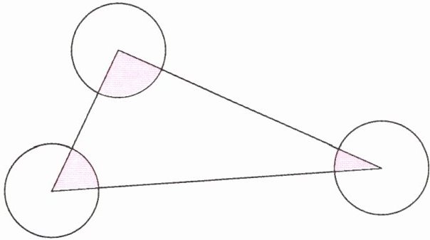 8. 将三个半径都是5 cm的圆的圆心依次连接起来,圆与三角形重叠的面积之和是多少平方厘米?