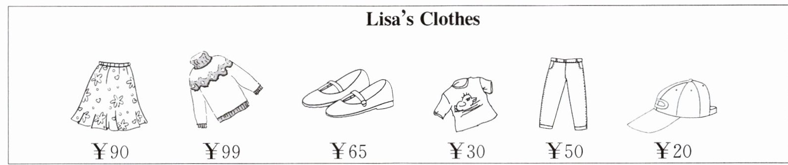 | ¥90 | ¥99 | ¥65 | ¥30 | ¥50 | ¥20 |