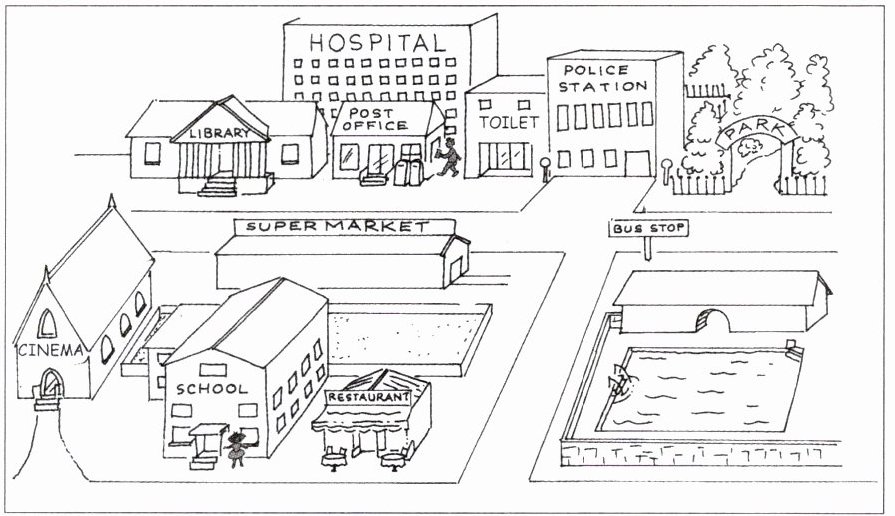 Policeman:______ the street and then ______. You can see a supermarket. ______.