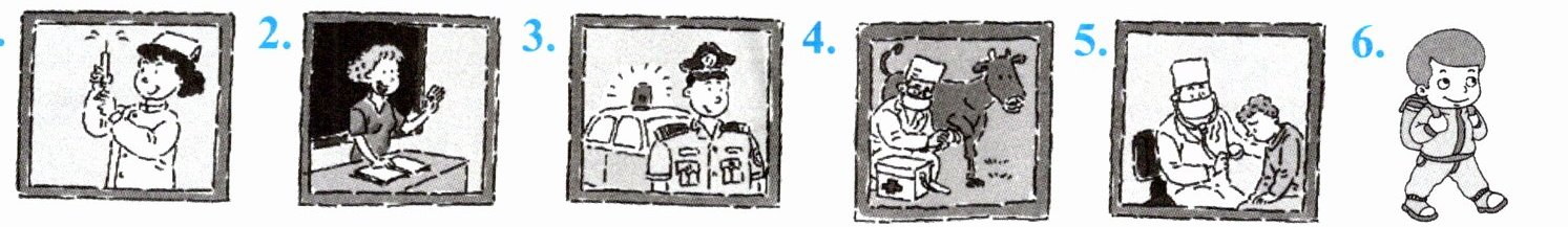1. singer 2. farmer 3. policeman 4. taxi driver