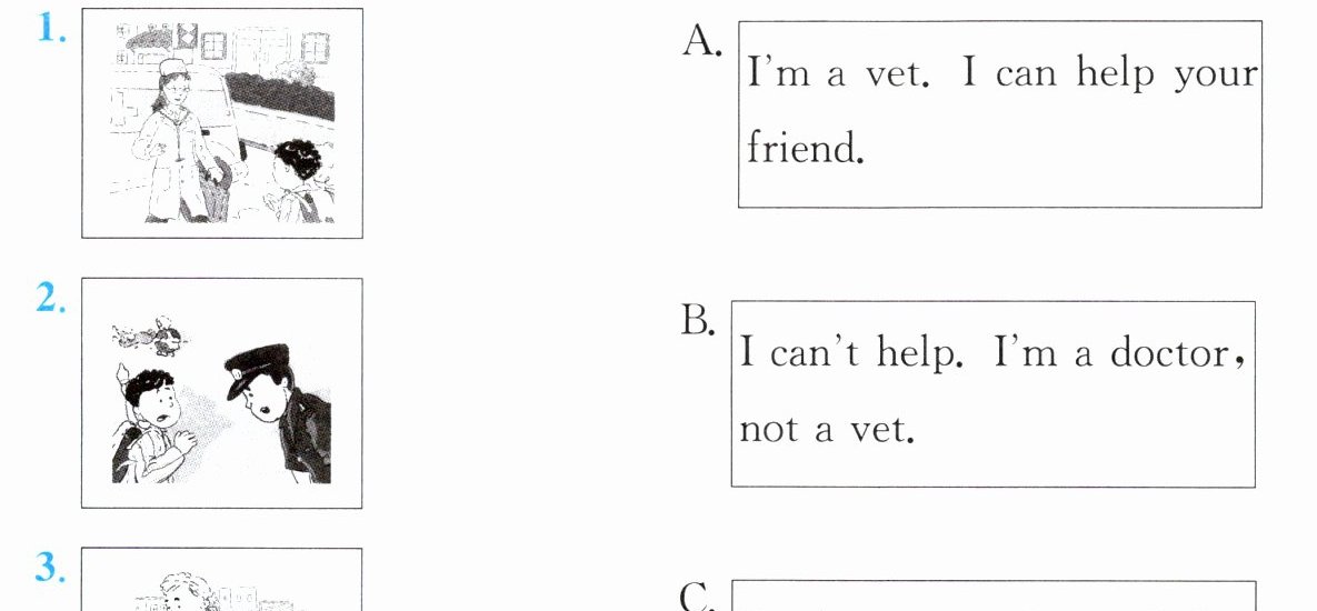 1. A. $\begin{array}{|l|}\hlineI'm a vet. I can help your\\friend.\\\hline\end{array}\\\hline $