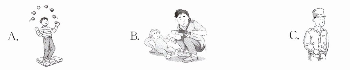 3. C. $\begin{array}{|l|}\hlineDon't worry. I can help.\\I'm a policeman.\\\hline\end{array}\\\hline $