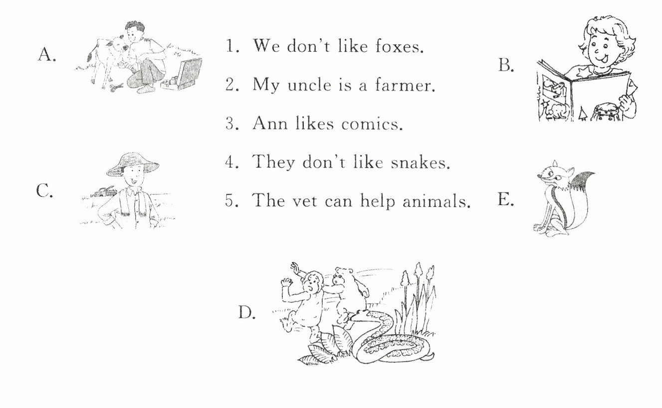 )3. What animal do you like?A. I like frogs.
