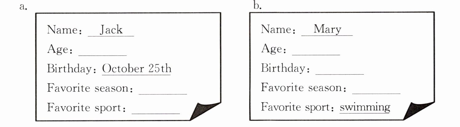 二、听录音,完成 Jack 和 Mary 的学生卡。