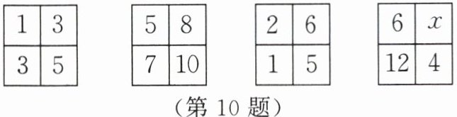 10. 按下列 $2×2$ 的方格中体现出的规律,则 $x$ 应是(
