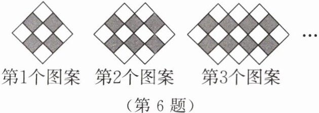 6. 如图,用灰白两色正方形瓷砖铺设地面,第 $n$ 个图案中白色瓷砖的块数为