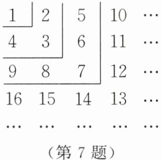 7. 将从 $1$ 开始的自然数按如图所示的规律排列,如位于第 $3$ 行、第 $4$ 列的数是 $12$,则位于第 $45$ 行、第 $4$ 列的数是