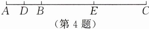4. 如图,已知点 $ D $ 是 $ AB $ 的中点,点 $ E $ 是 $ BC $ 的中点。若 $ AC = 8 $,$ EC = 3 $,则 $ AD = $