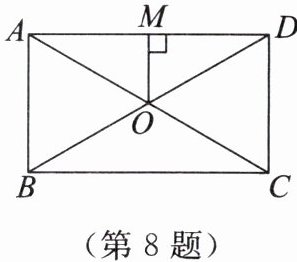 8. 如图,在矩形 $ABCD$ 中,对角线 $AC$,$BD$ 交于点 $O$,$\angle BAC = 60^{\circ}$,过点 $O$ 作 $OM\perp AD$ 于点 $M$,求证:$OM= \frac{1}{2}OB$。