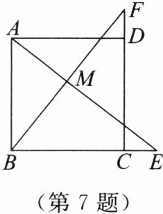 7. 如图,在正方形 $ABCD$ 中,点 $E$ 在 $BC$ 边的延长线上,点 $F$ 在 $CD$ 边的延长线上,且 $CE = DF$,连接 $AE$ 和 $BF$,相交于点 $M$。求证:$AE = BF$。
