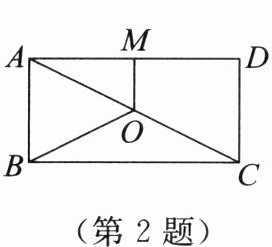 2. 如图,$O$ 是矩形 $ABCD$ 的对角线 $AC$ 的中点,$M$ 是 $AD$ 的中点。若 $AB = 5$,$AD = 12$,则四边形 $ABOM$ 的周长为(
