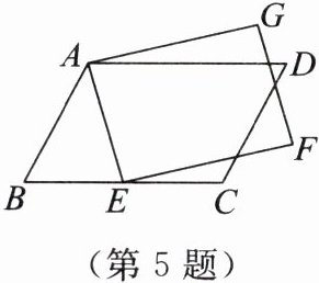 5. 如图,在 $□ ABCD$ 中,$E$ 为 $BC$ 边上一点,以 $AE$ 为边作矩形 $AEFG$。若 $\angle BAE = 40^{\circ}$,$\angle CEF = 15^{\circ}$,则 $\angle D$ 的大小为
