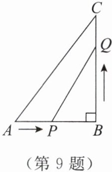 9. 如图,在 $\triangle ABC$ 中,$\angle B= 90^{\circ}$,$AB = 5\ cm$,$BC = 7\ cm$. 点 $P$ 从点 $A$ 开始沿 $AB$ 边向点 $B$ 以 $1\ cm/s$ 的速度移动,点 $Q$ 从点 $B$ 开始沿 $BC$ 边向点 $C$ 以 $2\ cm/s$ 的速度移动. 如果 $P,Q$ 分别从 $A,B$ 同时出发,那么几秒后,四边形 $APQC$ 的面积等于 $11.5\ cm^{2}$?