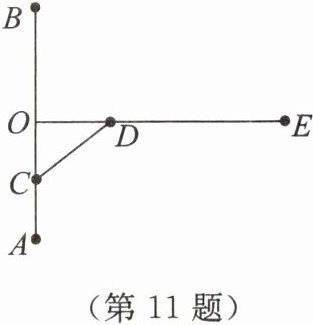 11. 如图,一根木棍 $ OE $ 垂直平分柱子 $ AB $,$ AB = 200 $ cm,$ OE = 260 $ cm. 一只小猫 $ C $ 由柱子底端 $ A $ 点以 $ 2 $ cm/s 的速度向顶端 $ B $ 点爬行,同时,另一只小猫 $ D $ 由点 $ O $ 以 $ 3 $ cm/s 的速度沿木棍 $ OE $ 爬行. 求是否存在这样的时刻,使两只小猫与 $ O $ 点组成的三角形面积是 $ 1800 $ cm^2.