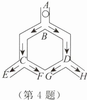 4. 如图,一个小球从 A 点沿制定的轨道下落,在每个交叉口都有向左或向右两种机会均等的结果,则小球最终到达 H 点的概率是(