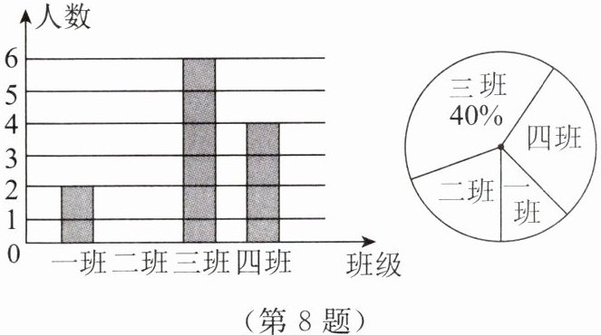 8. 为了更好地落实“双减”政策,提升学生的综合素质,某校在课后延时服务中开设了航模、冰球、艺术体操等课程供学生选择. 科学老师统计了七年级四个班选择航模课程的人数,并制成如图所示的统计图.
