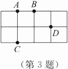 3. 如图是$4× 2$的正方形网格,在$A$,$B$,$C$,$D$四个点中任意选取三个点,能组成等腰三角形的概率为(
