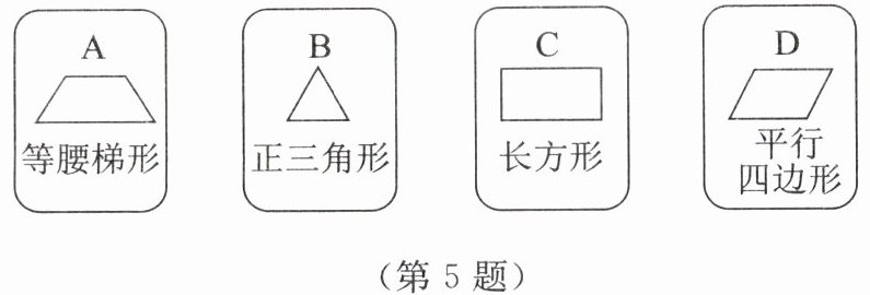 5. 如图,有 4 张背面相同的纸牌 A,B,C,D,其正面分别画有 4 个不同的几何图形。将这 4 张纸牌背面朝上洗匀后先由小明从中任意摸出 1 张,放回洗匀后再由小敏从中任意摸出 1 张,则“小明所摸纸牌上的图形是中心对称图形,小敏所摸纸牌上的图形是轴对称图形”的概率为