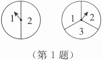 1. 如图,分别旋转两个标准的转盘,两个转盘分别被分成两等份和三等份,则转盘所转到的两个数字之积为奇数的概率是(