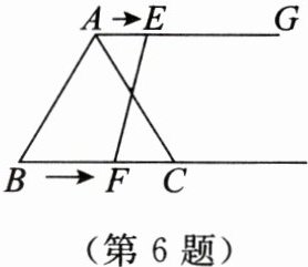 6. 如图,在等边三角形$ABC$中,$BC = 6\ cm$,射线$AG // BC$. 点$E从点A$出发,沿射线$AG以1\ cm/s$的速度运动,同时点$F从点B$出发,沿射线$BC以2\ cm/s$的速度运动,设运动时间为$t(s)$.