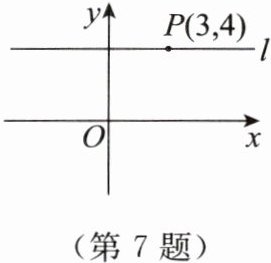 7. 如图,在平面直角坐标系中,点$P的坐标为(3,4)$,直线$l过点P且与x$轴平行. 点$A在x$轴上,点$B在直线l$上. 若以$O$,$B$,$P$,$A$为顶点的四边形是菱形,请写出所有符合条件的点$A$的坐标.