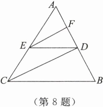 8. 如图,在 $\triangle ABC$ 中,$CD // EF$,$BC // DE$,求证:$\frac{AF}{FD} = \frac{AD}{BD}$。