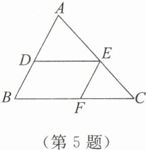 5. 如图,点 $D$,$E$,$F$ 分别位于 $\triangle ABC$ 的三条边上,满足 $DE // BC$,$EF // AB$。如果 $AD:DB = 3:2$,那么 $BF:FC = $