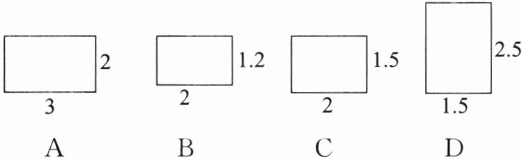 2. 已知在矩形 $ABCD$ 中,$AB = 4$,$BC = 3$,则下列四个矩形与矩形 $ABCD$ 相似的是(