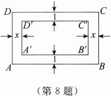 8. 如图,矩形 $ABCD$ 的长 $AB = 30$,宽 $BC = 20$,那么当 $x$ 为多少时,两个矩形 $ABCD$ 与 $A'B'C'D'$ 相似?