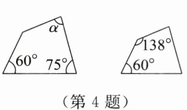 4. 若如图所示的两个四边形相似,则 $\angle \alpha$ 的度数是