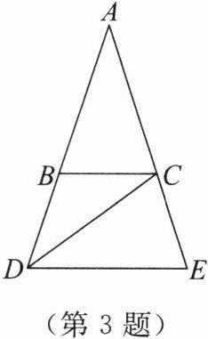 3. 德国著名天文学家开普勒说过:“几何学里有两件宝,一个是勾股定理,另一个是黄金分割。如果把勾股定理比作黄金矿的话,那么可以把黄金分割比作钻石矿。”现将底与腰之比或腰与底之比为 $ \frac{\sqrt{5} - 1}{2} $ 的等腰三角形称为黄金三角形,它是一个顶角为 $ 36^{\circ} $ 或 $ 108^{\circ} $ 的等腰三角形。如图,$ \triangle ABC $,$ \triangle BCD $,$ \triangle ADE $ 都是黄金三角形。若 $ AB = 2 $,则 $ DE $ 的大小为(