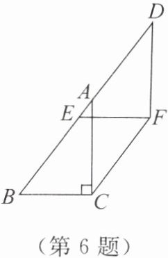 6. 如图,在$\mathrm{Rt}\triangle ABC$中,$\angle ACB = 90^{\circ}$,$AC = 4\mathrm{cm}$,$BC = 3\mathrm{cm}$. 将$\mathrm{Rt}\triangle ABC沿着BA方向平移4\mathrm{cm}到\triangle DEF$的位置,连接$CF$.