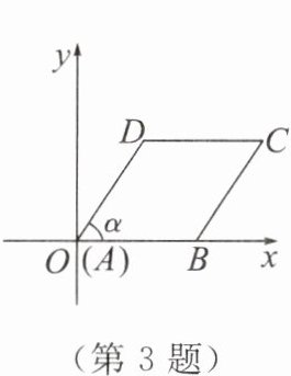 3. 如图,在平面直角坐标系中,菱形$ABCD的顶点A$,$B的坐标分别是(0,0)$,$(2,0)$,$\angle\alpha = 60^{\circ}$,则顶点$C$的坐标是