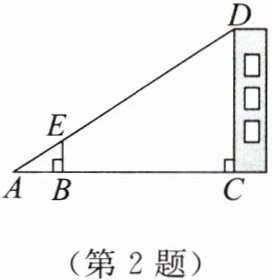 2. 如图,某校数学兴趣小组利用标杆 $ BE $ 测量图书馆的高度. 已知标杆 $ BE $ 高 $ 1.5 \, m $,测得 $ AB = 1.2 \, m $,$ BC = 12.8 \, m $,则图书馆 $ CD $ 的高度是(
