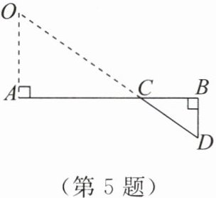 5. 如图,为了测量一个大峡谷的宽度,地质勘探人员在对面的岩石上观察到一个特别明显的标志点 $ O $,再在他们所在的这一侧选点 $ A $,$ B $,$ D $,使 $ AB \perp AO $,$ DB \perp AB $,然后确定 $ DO $ 和 $ AB $ 的交点 $ C $,测得 $ AC = 120 \, m $,$ CB = 60 \, m $,$ BD = 50 \, m $,请你帮助他们算出大峡谷的宽 $ AO $.