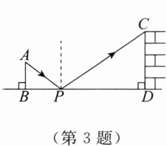 3. 如图是一位同学设计的用手电筒来测量某古城墙高度的示意图. 点 $ P $ 处放一水平的平面镜,光线从点 $ A $ 出发经平面镜反射后刚好到古城墙 $ CD $ 的顶端 $ C $ 处. 已知 $ AB \perp BD $,$ CD \perp BD $,测得 $ AB = 2 \, m $,$ BP = 3 \, m $,$ PD = 15 \, m $,那么该古城墙 $ CD $ 的高度是