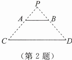 2. 如图,电灯 $P$ 在横杆 $AB$ 的正上方,$AB$ 在灯光下的影子为 $CD$,$AB // CD$,$AB = 2m$,$CD = 5m$,点 $P$ 到 $CD$ 的距离是 $3m$,则点 $P$ 到 $AB$ 的距离是(