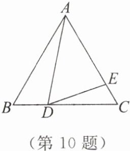 10. 如图,在边长为 $ 9 $ 的正三角形 $ ABC $ 中, $ BD = 3 $, $ \angle ADE = 60° $,则 $ AE $ 的长为