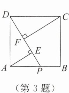 3. 如图,在正方形 ABCD 中,点 P 在 AB 边上,AE⊥DP 于点 E,CF⊥DP 于点 F,若 AE= 4,CF= 7,则 EF=