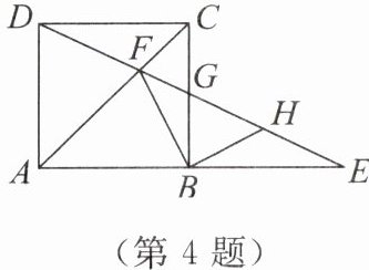 4. 如图,$E$ 为正方形 $ABCD$ 的边 $AB$ 延长线上一点,$DE$ 交 $AC$ 于点 $F$,交 $BC$ 于点 $G$,$H$ 为 $GE$ 的中点,求证:$FB \perp BH$。