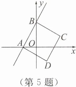 5. 如图,一次函数 $y = 2x + 4$ 的图象与 $x$,$y$ 轴分别相交于点 $A$ 和 $B$,以 $AB$ 为边作正方形 $ABCD$。