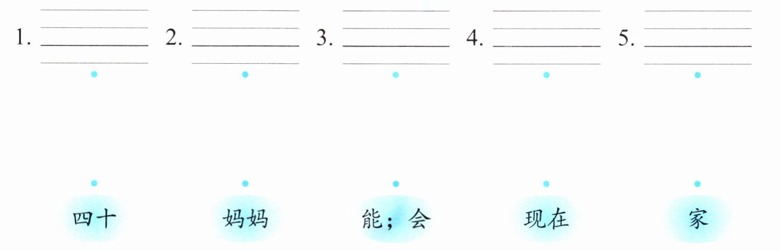 Ⅱ. 1. mom-妈妈 2. forty-四十 3. can-能;会 4. home-家 5. now-现在