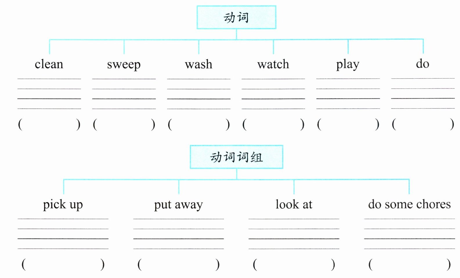 Ⅴ. 1. sing, sing 2. classroom, clean the desk 3. rabbit, jump, carrots