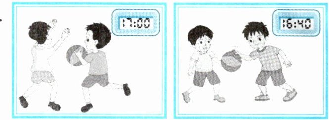 1. I play ball on the sports ground. 2. We play ball at 4:40 p.m. 3. Ben plays ball with Kate.