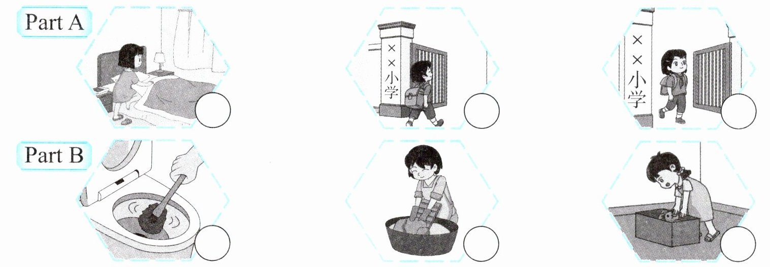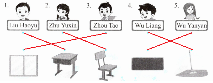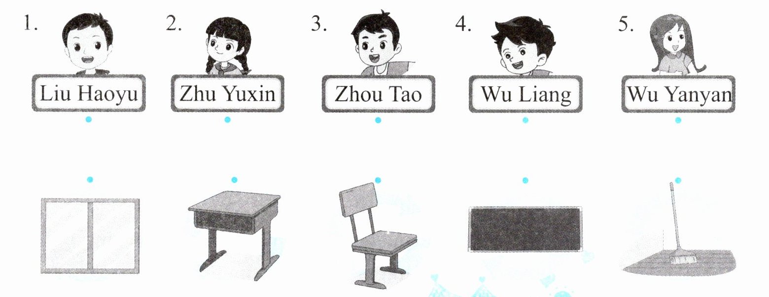 Ⅳ. 下面五个孩子正在教室里做卫生,他们分别在做什么呢?听录音连线。