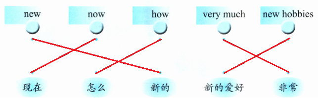 Ⅰ. 听录音,找出句子中所含的单词或短语,按录音顺序排序,并将单词或短语与相应的中文意思连线。