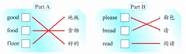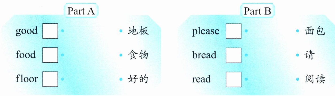 | floor | □ | ·好的 | read | □ | ·阅读 |