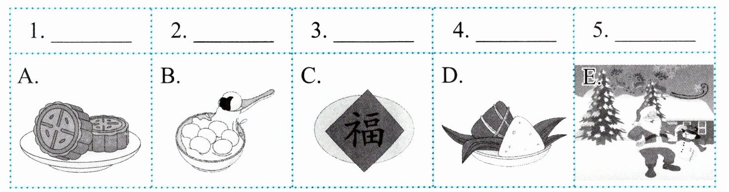 Ⅱ. 听录音,根据录音顺序写出你所听到的图片的序号。