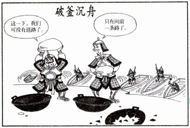 7. 某同学创作了右图所示漫画,画中将士砸掉烧饭的锅,凿沉战船,以示决一死战的决心。漫画所示的历史事件是(